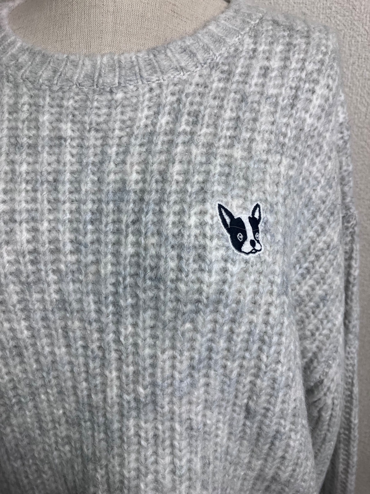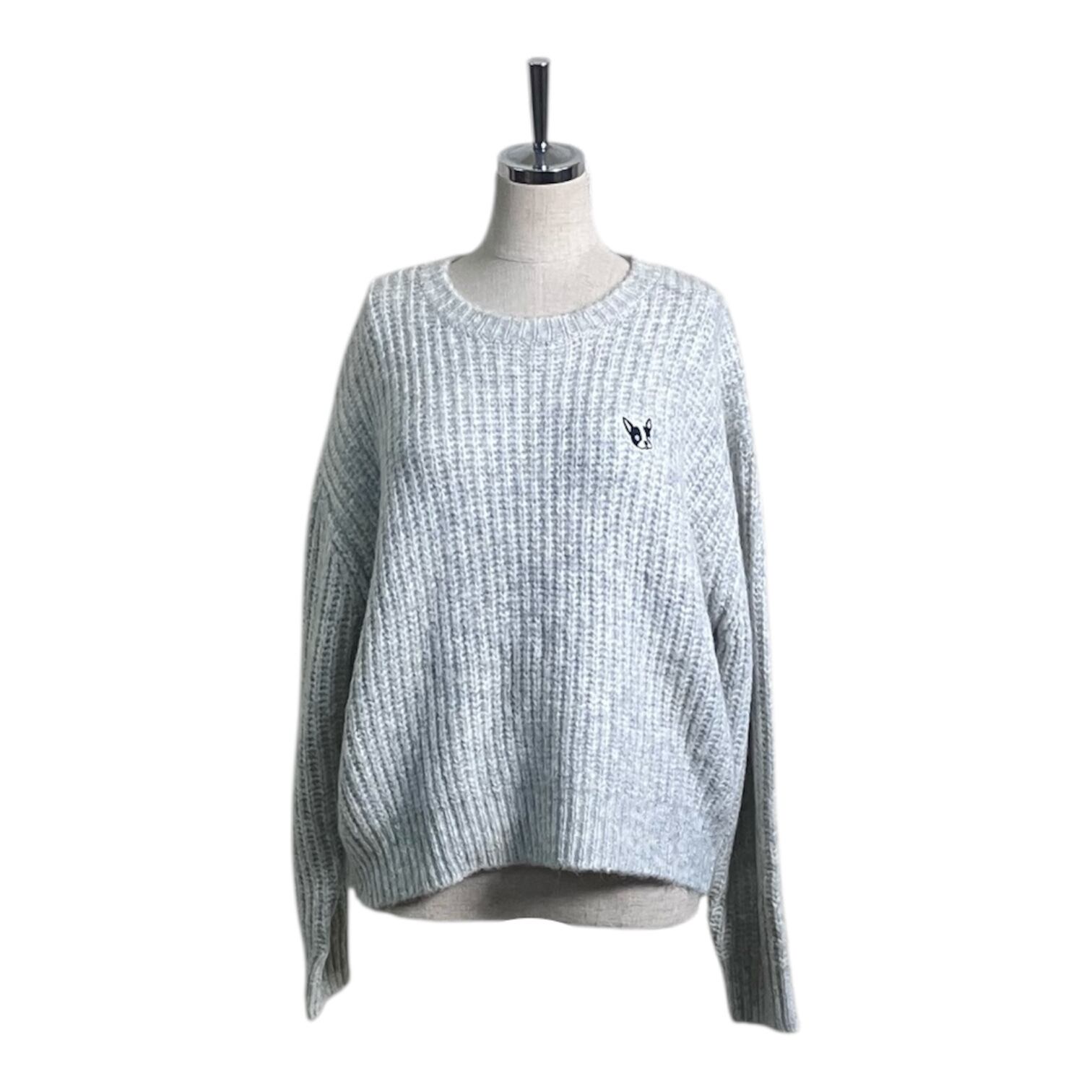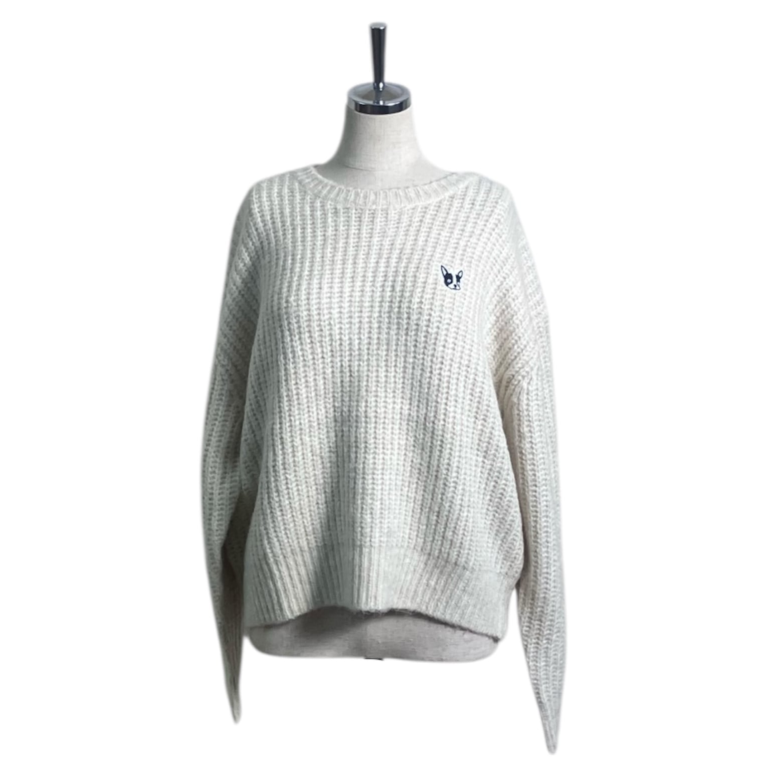 【ROSIEE】French bull Embroidery Ridge Knit