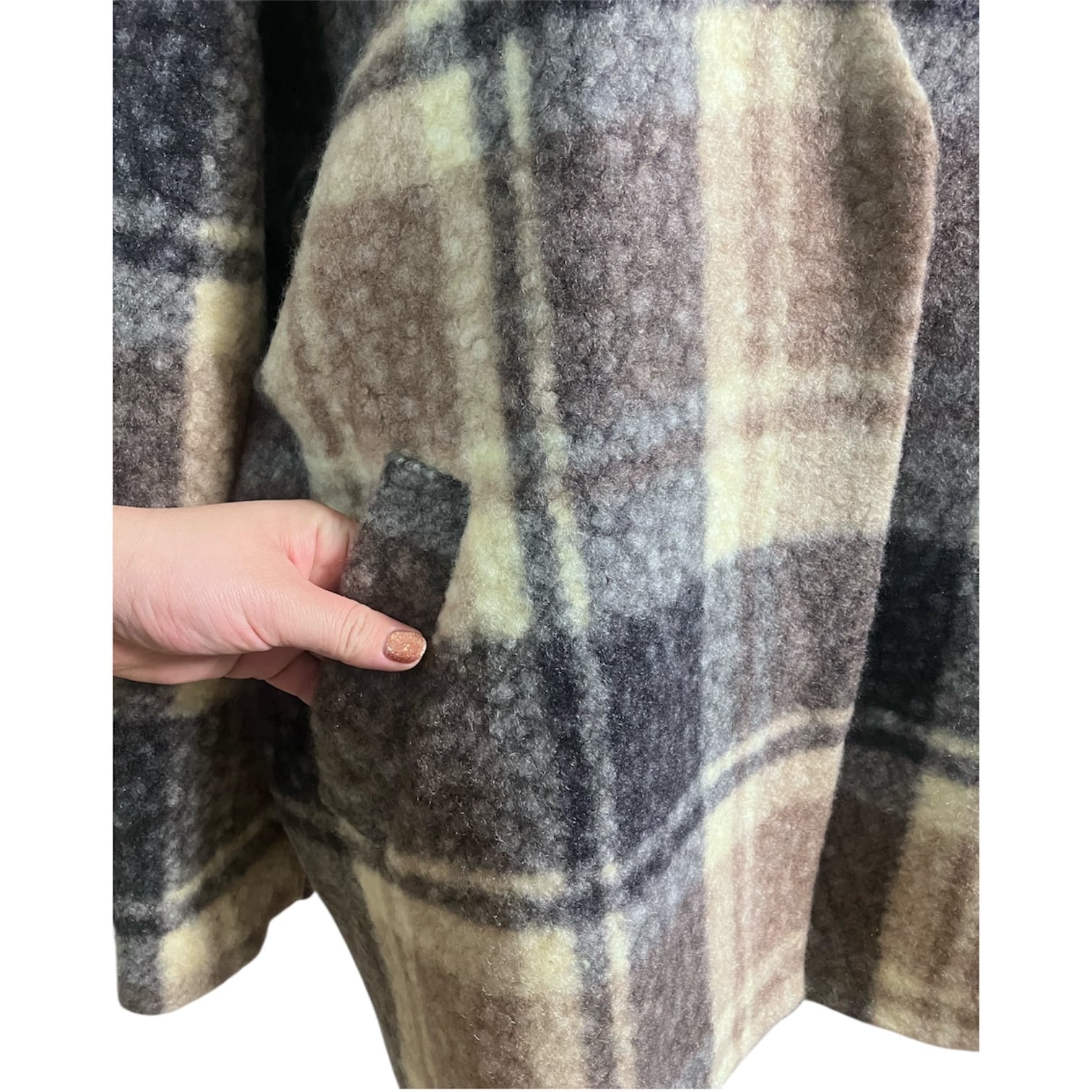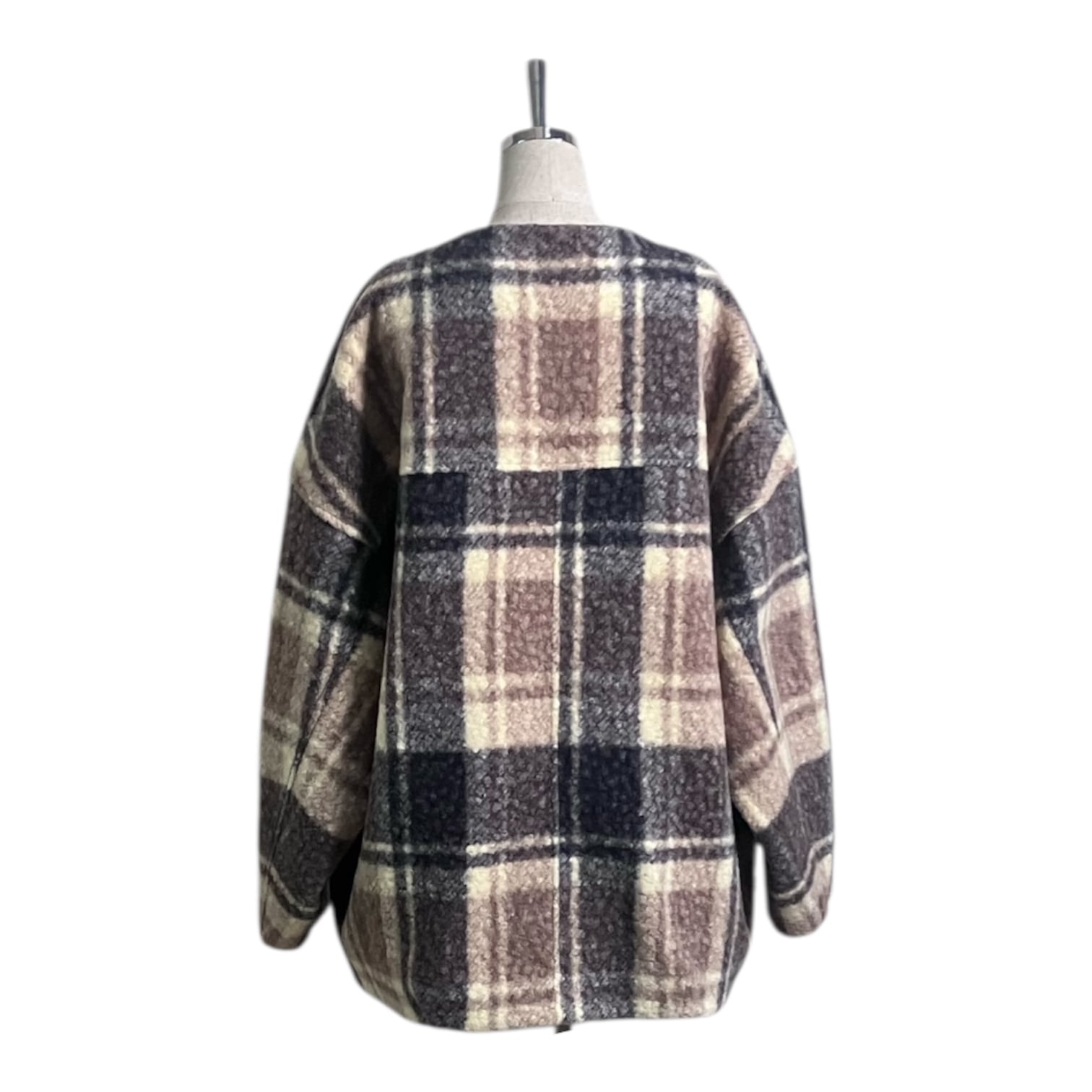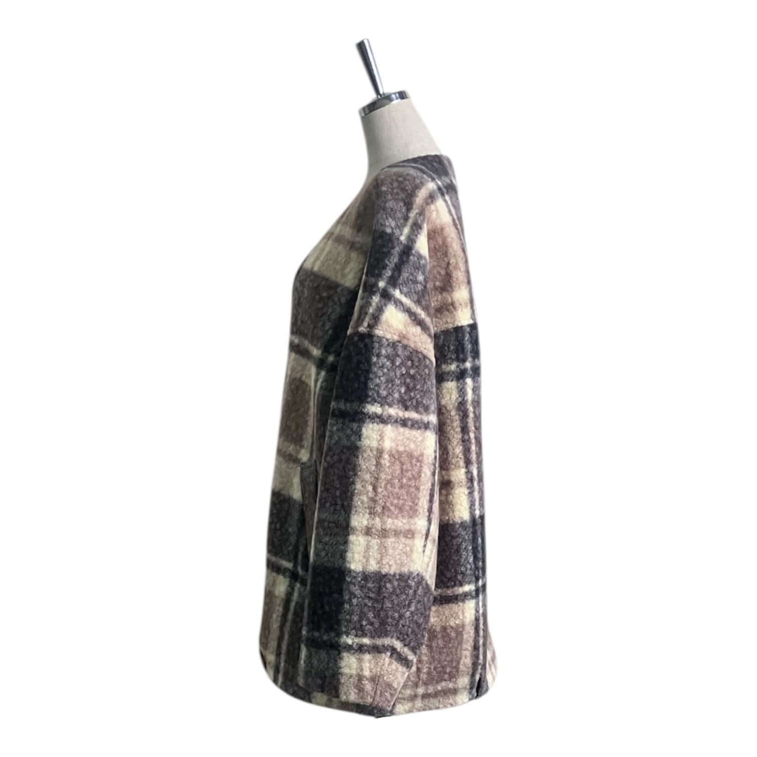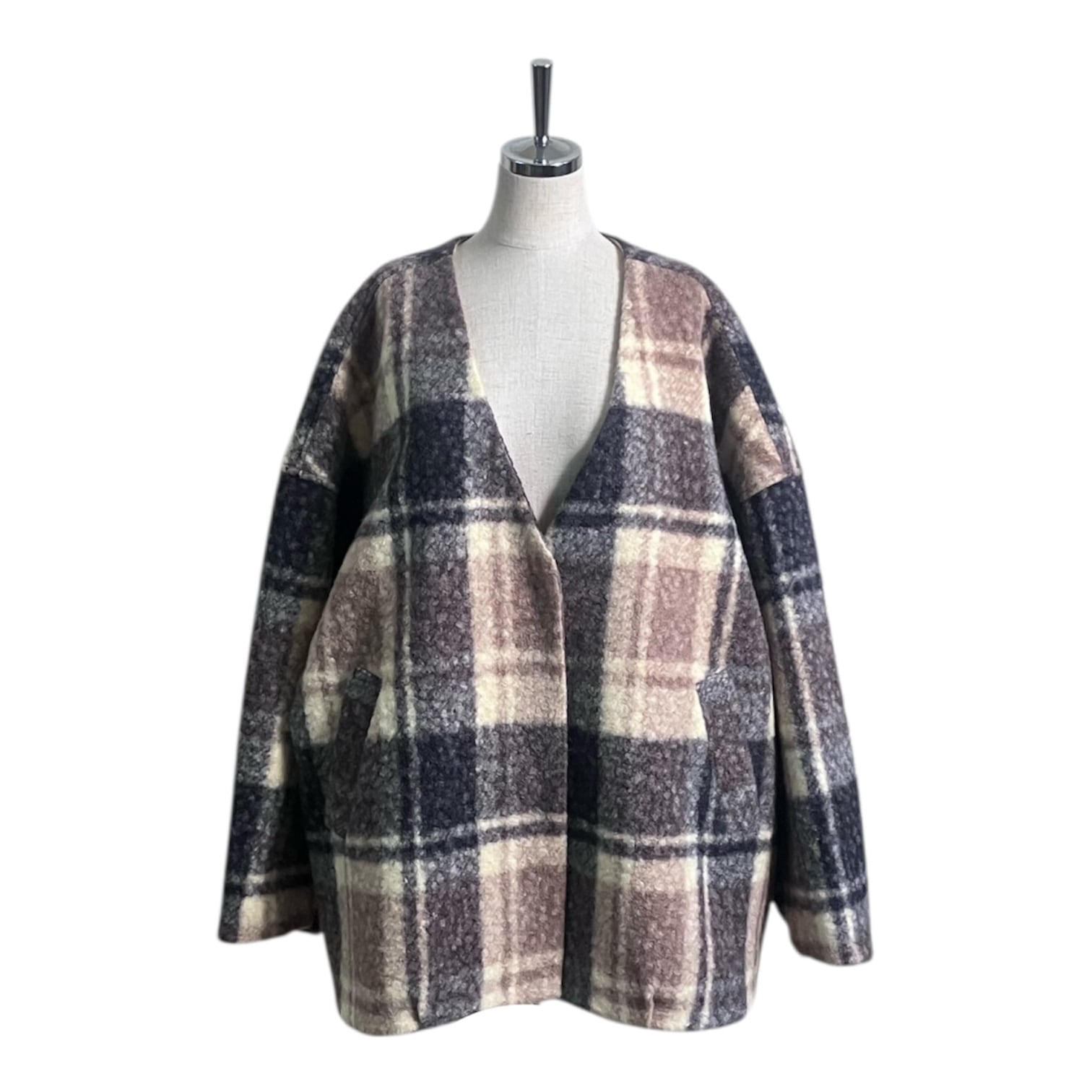 【Trois】No-collar check coat