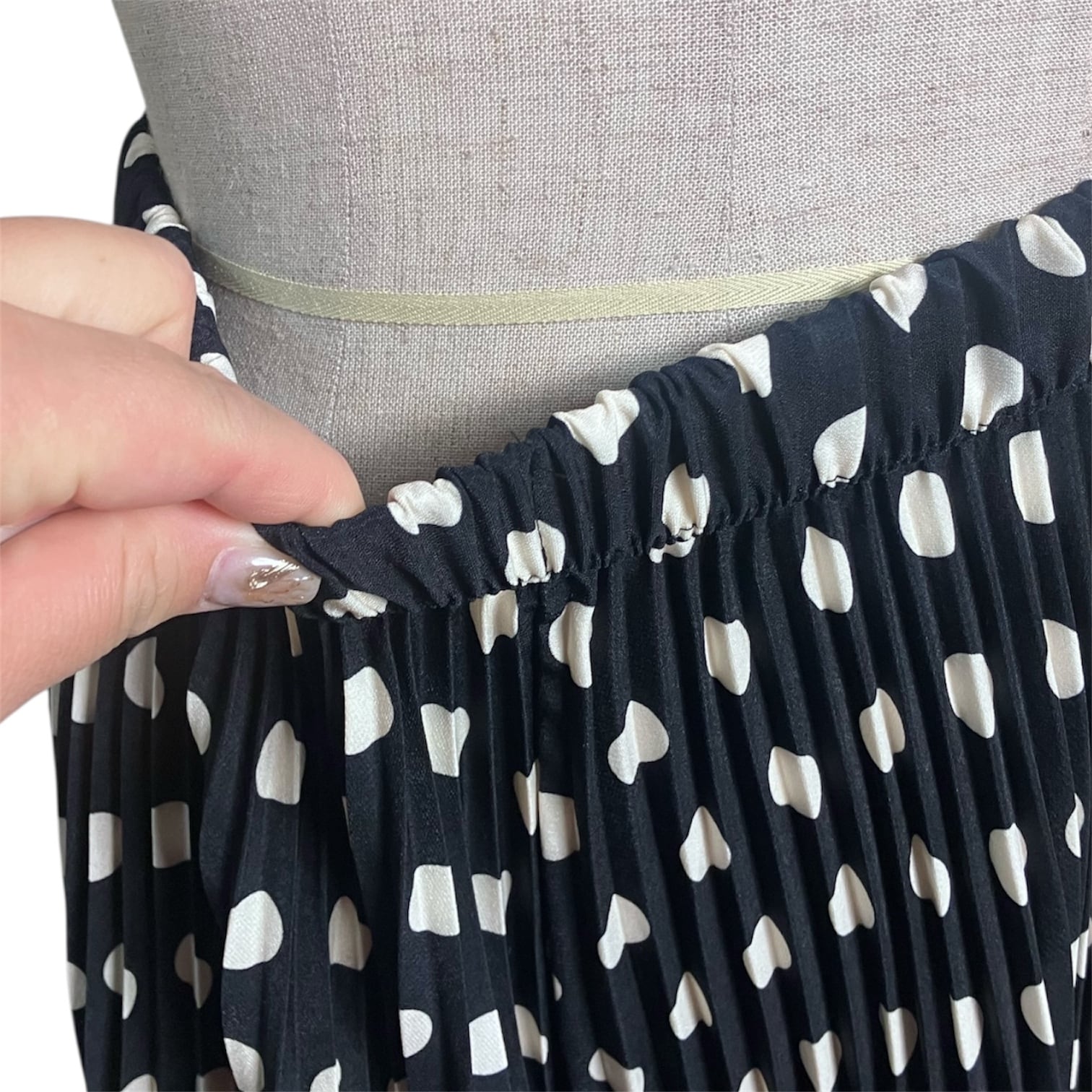 ・タックやプリーツ等の伸縮する部位は伸ばさない状態で計測しています。