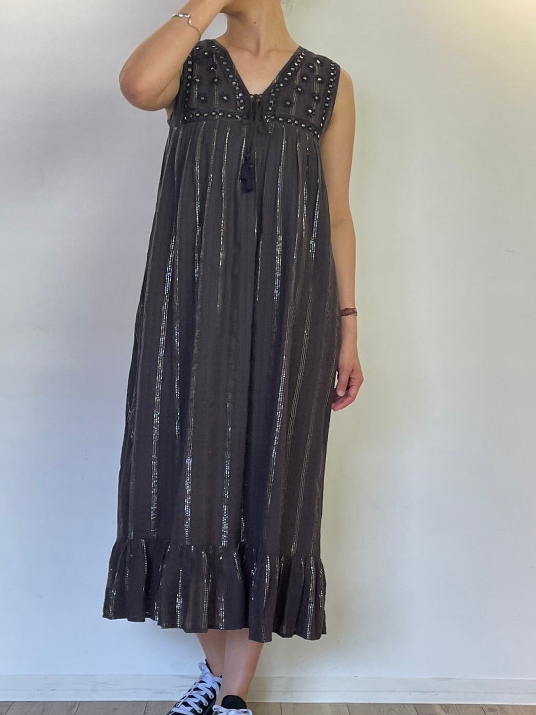【Sara mallika】ルレックスストライプミラーエンブレムワンピース